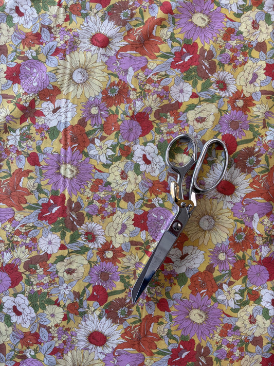 Kokka - Yellow Retro Floral Cotton Lawn