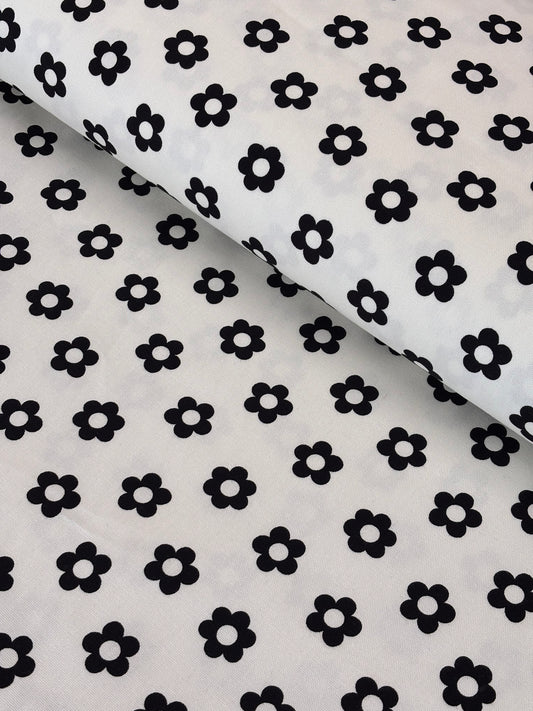 Lightweight Canvas - White with Black Flowers