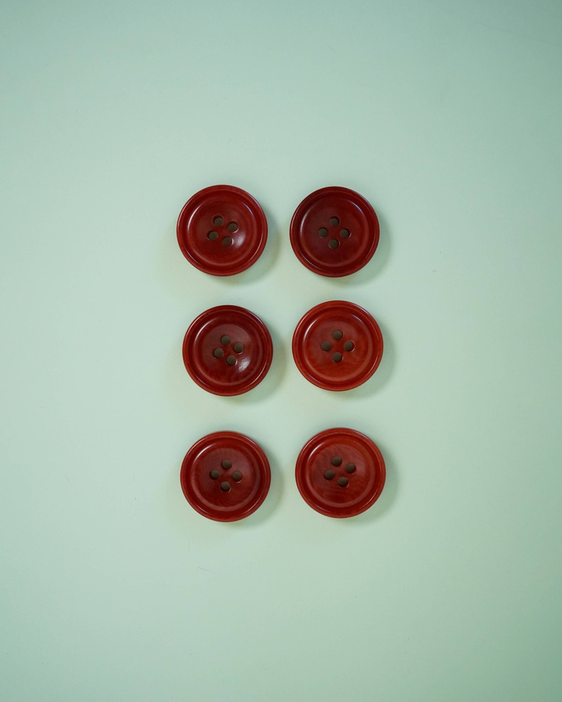 We are delighted to introduce our exquisite collection of custom-dyed corozo nut buttons. These buttons have been meticulously designed to complement our fabrics, offering a seamless and sophisticated touch to your projects. Crafted from the seeds of the Tagua palm tree, corozo buttons are remarkably hard and scratch-resistant. Their natural grain readily absorbs dyes, ensuring vibrant, fade-resistant color and a unique look for each individual button. Corozo buttons are not only beautiful but also environmentally friendly. They are derived from a sustainable, renewable resource and are completely biodegradable.