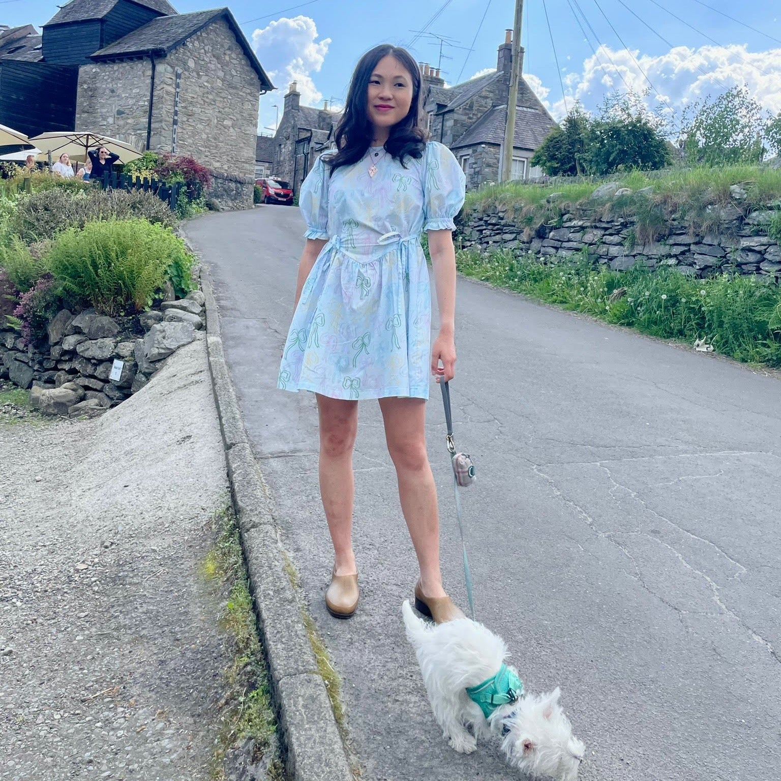 Designed by Georgina Li of Hey Sew Sister in the UK, this special fabric is adorned with a vibrant multicolored bow pattern. It is smooth and soft with slight structure, somewhere between a lawn and a poplin. Perfect for the cutest spring & summer garments and accessories.