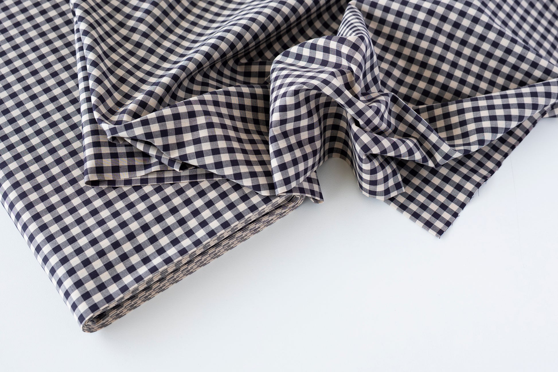 A super classic cotton gingham! This fabric is light and has a slightly crisper hand. The ground is in the beige family. Checks are about 1/4" square. Can be used for both quilting and garment-making.