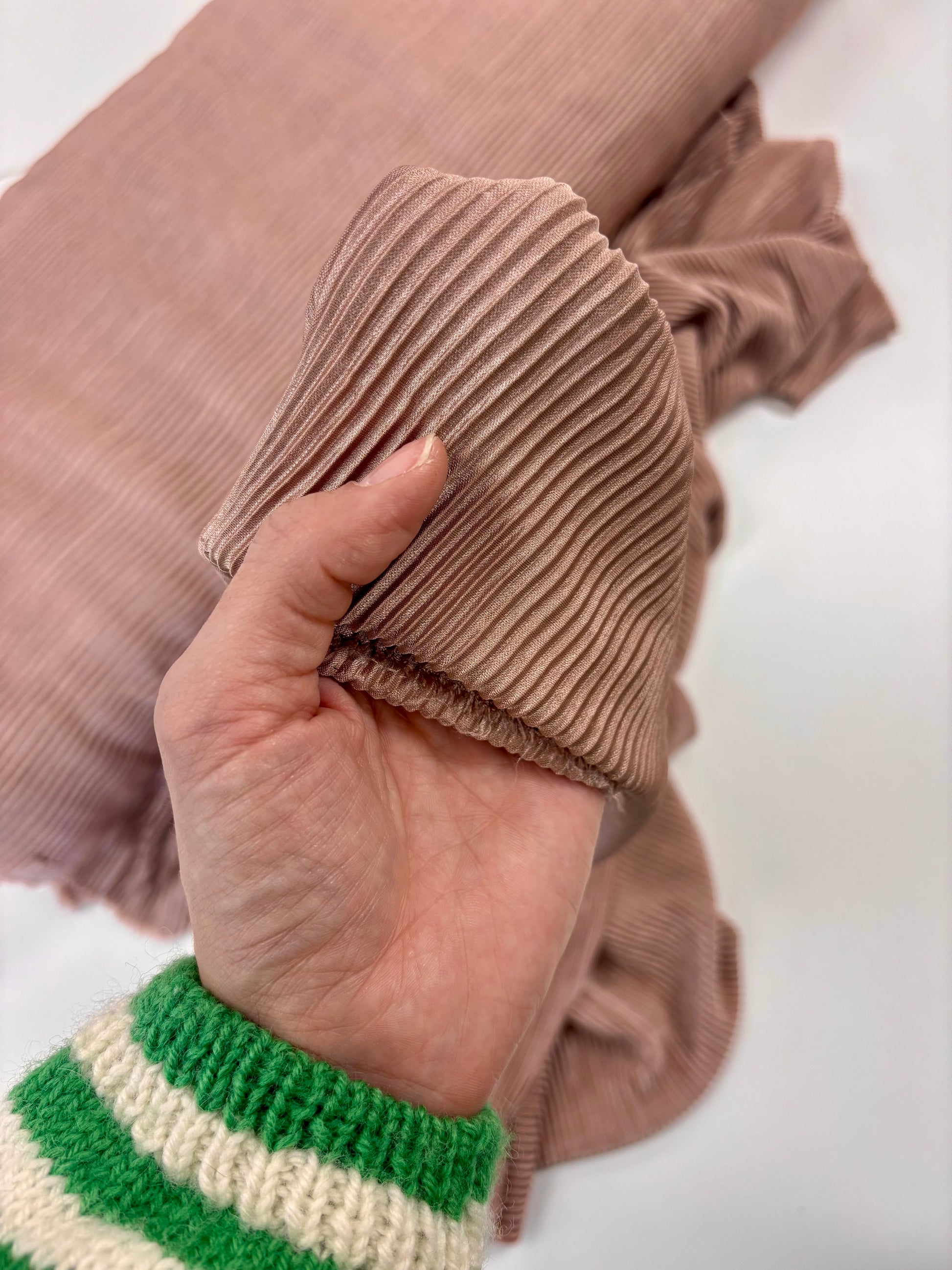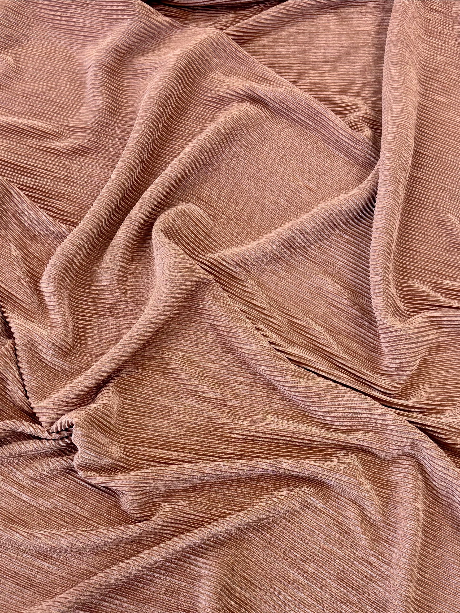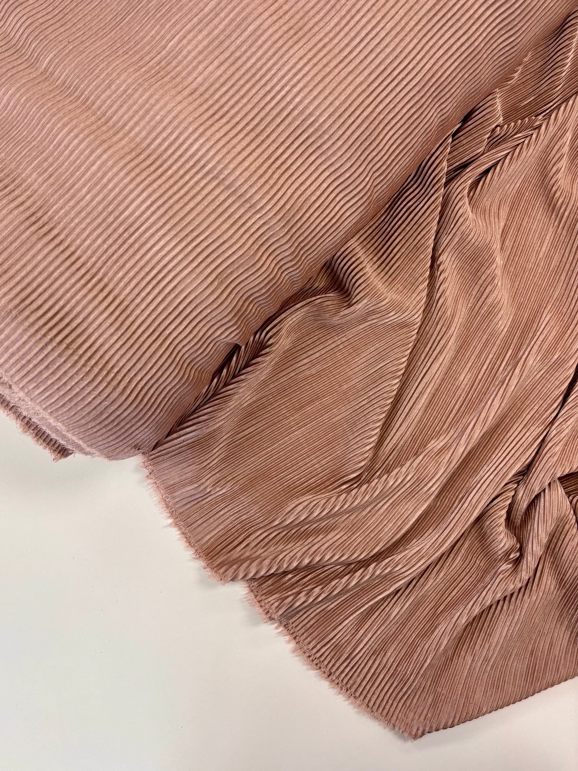 Our Deadstock plissé is perfect for your holiday makes, combining a fancy look with a soft and comfy feel. Plissé has a permanently pleated or wrinkled texture created through the fabric finishing process. This fabric is stretchy with lots of drape and would be perfect for a slinky dress or a matching set.
