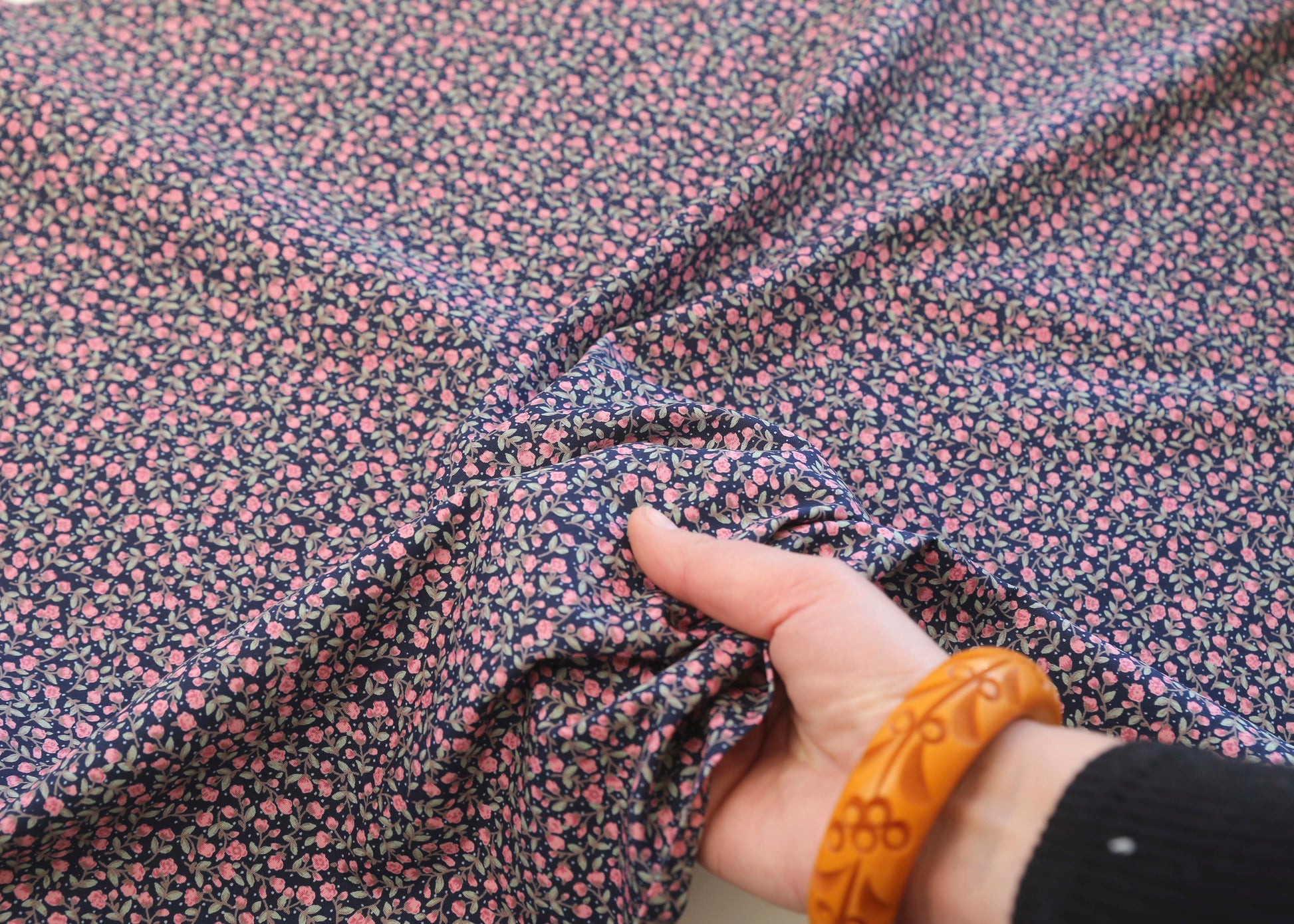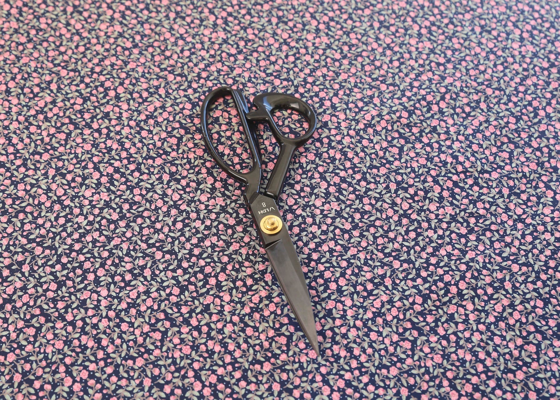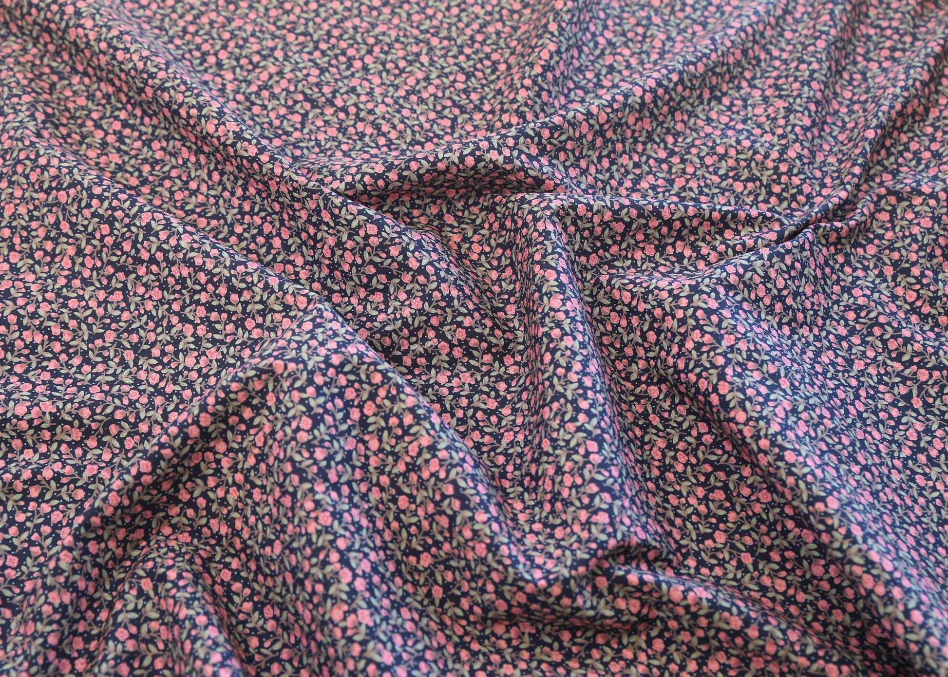 Deadstock Cotton Sateen Ditsy Floral - Pink on Navy