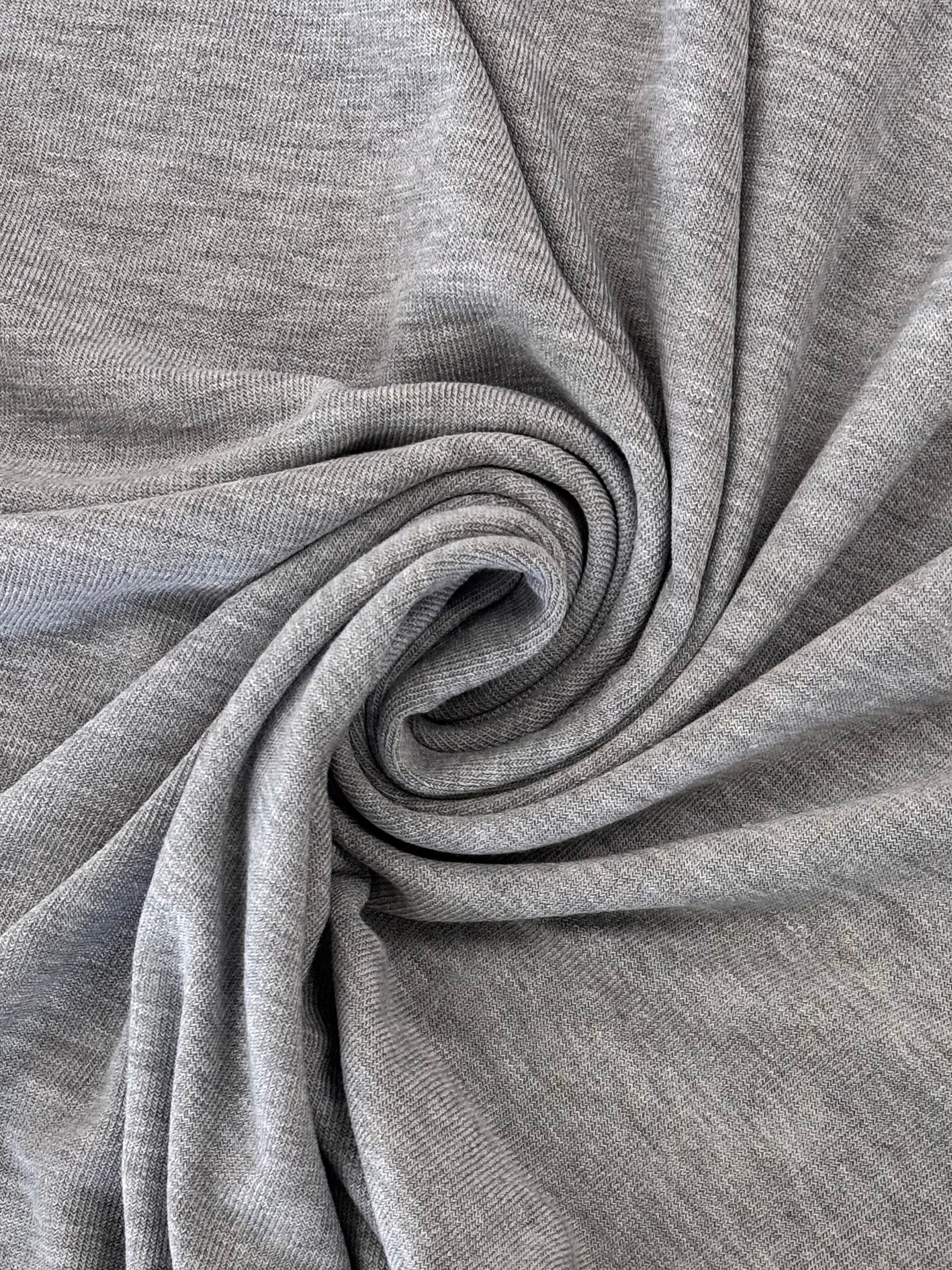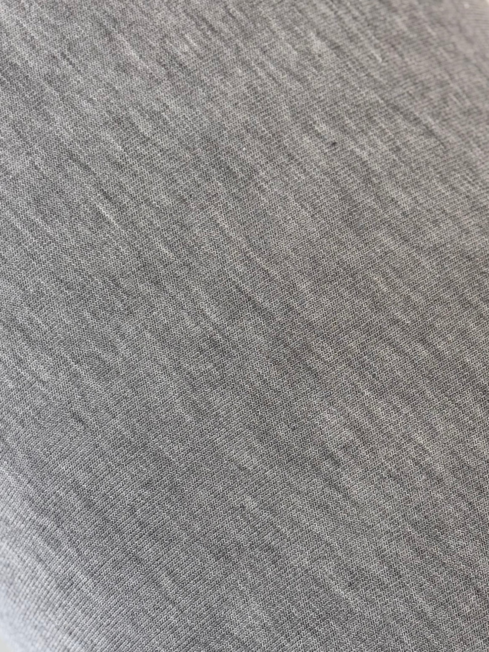 This fabric is a hidden gem! Astonishingly soft, stretchy, and cozy, it would make the ideal loungewear set. The heathered grey has cool, purplish undertones. This is a lightweight sweater knit. We'd make the Tendu Top and Plié Pants by Natalie Della Silva with this special fabric.