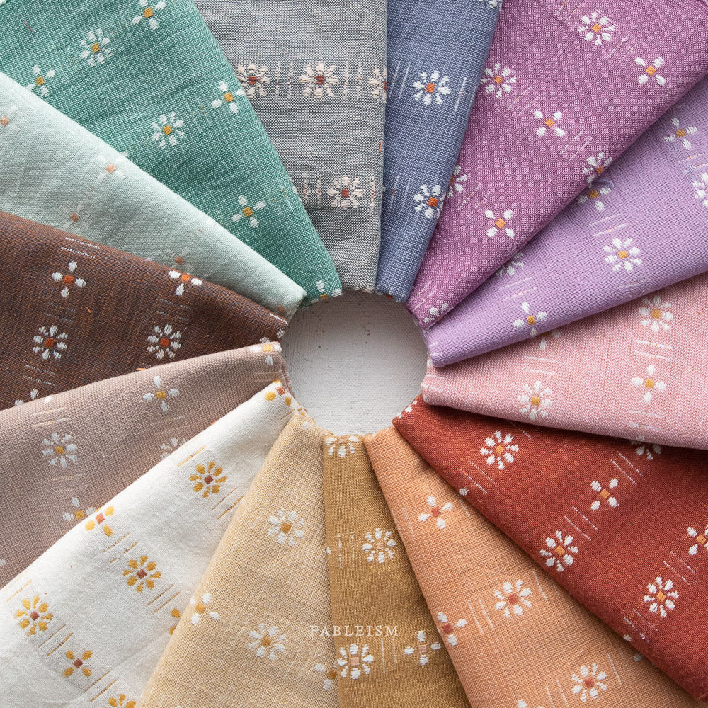 Forest Forage Daisies are playful basics that are perfect for quilts and apparel alike. Midweight, with a feminine daisy design woven into the fabric! A vailable in Fableism's signature earthy color palette.