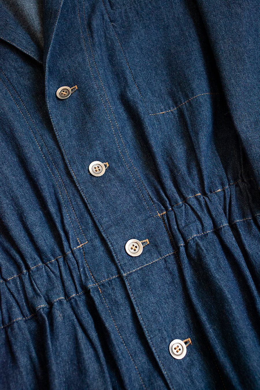 Construction techniques: Welt pocket, french seam side pockets, collar with neck facing, full sleeve, elasticated waistband, mock fell seams, topstitching details and optional zip fastening.
