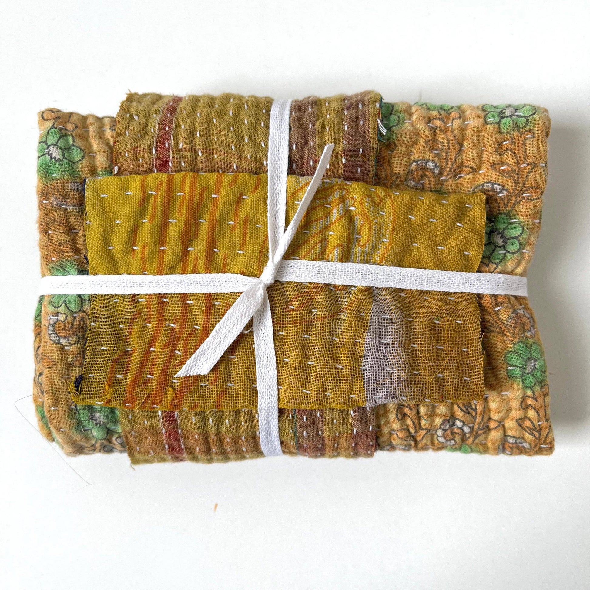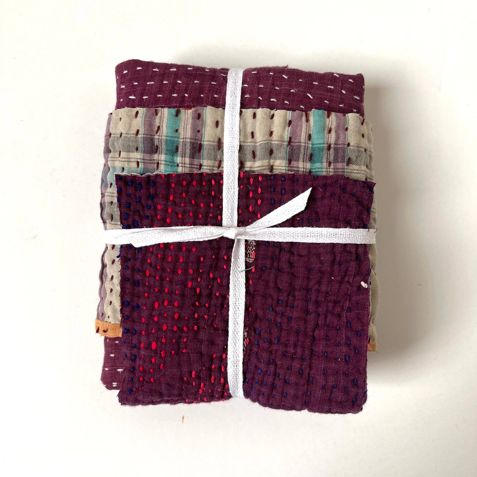 The Otto Finn Lab Mending Bundle includes kantha scrap fabric from our production, saved from the cutting room floor in keeping with our commitment to reduce textile waste. Use them to patch a knee, reinforce a well-loved piece, or to breathe life back to a garment you haven't been wearing and give it a second chance. We recommend using sashiko or quilting needles as these fabrics are thick.