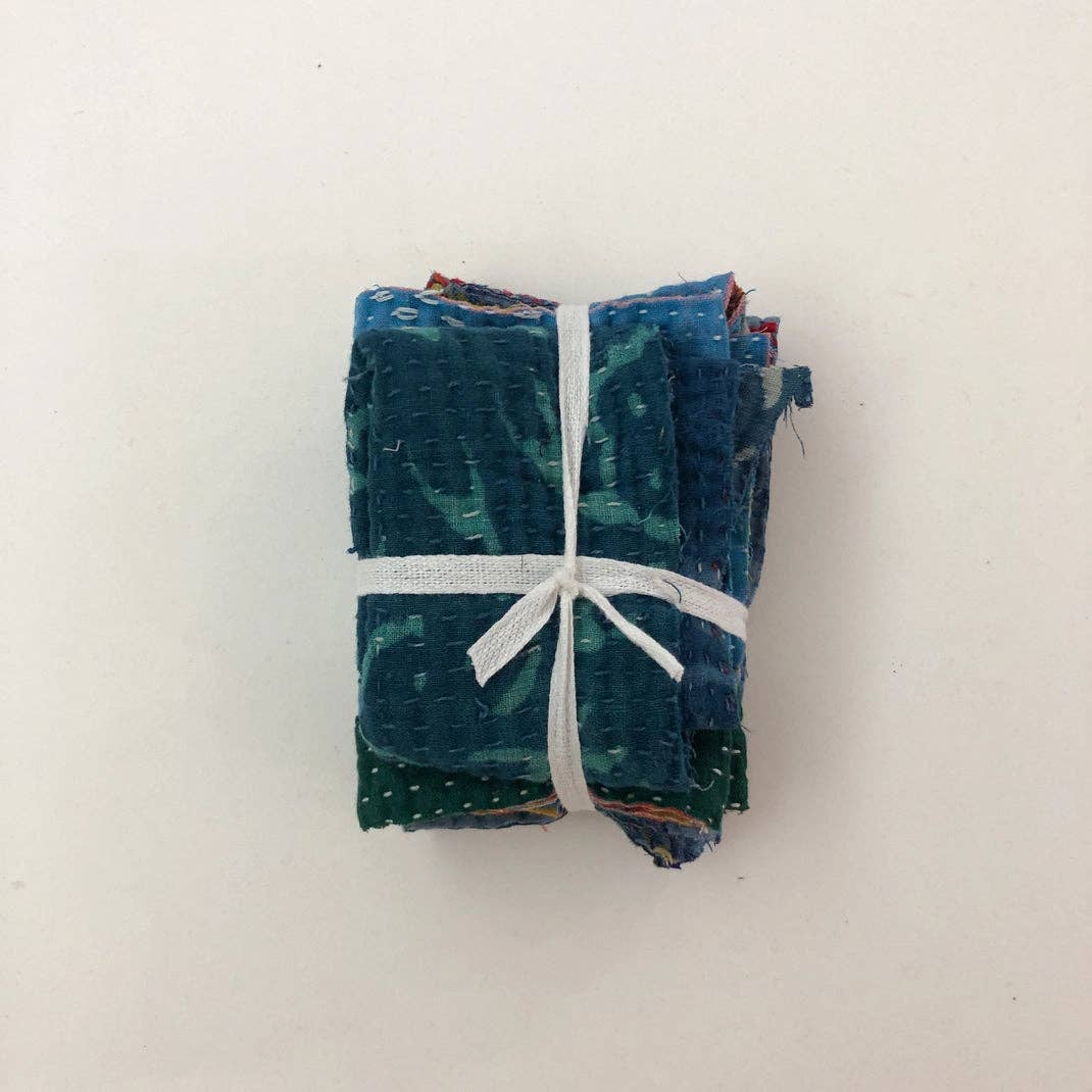 The Otto Finn Lab Mending Bundle includes kantha scrap fabric from our production, saved from the cutting room floor in keeping with our commitment to reduce textile waste. Use them to patch a knee, reinforce a well-loved piece, or to breathe life back to a garment you haven't been wearing and give it a second chance. We recommend using sashiko or quilting needles as these fabrics are thick.