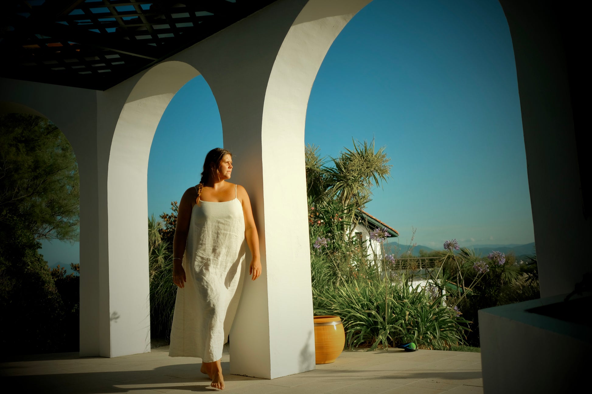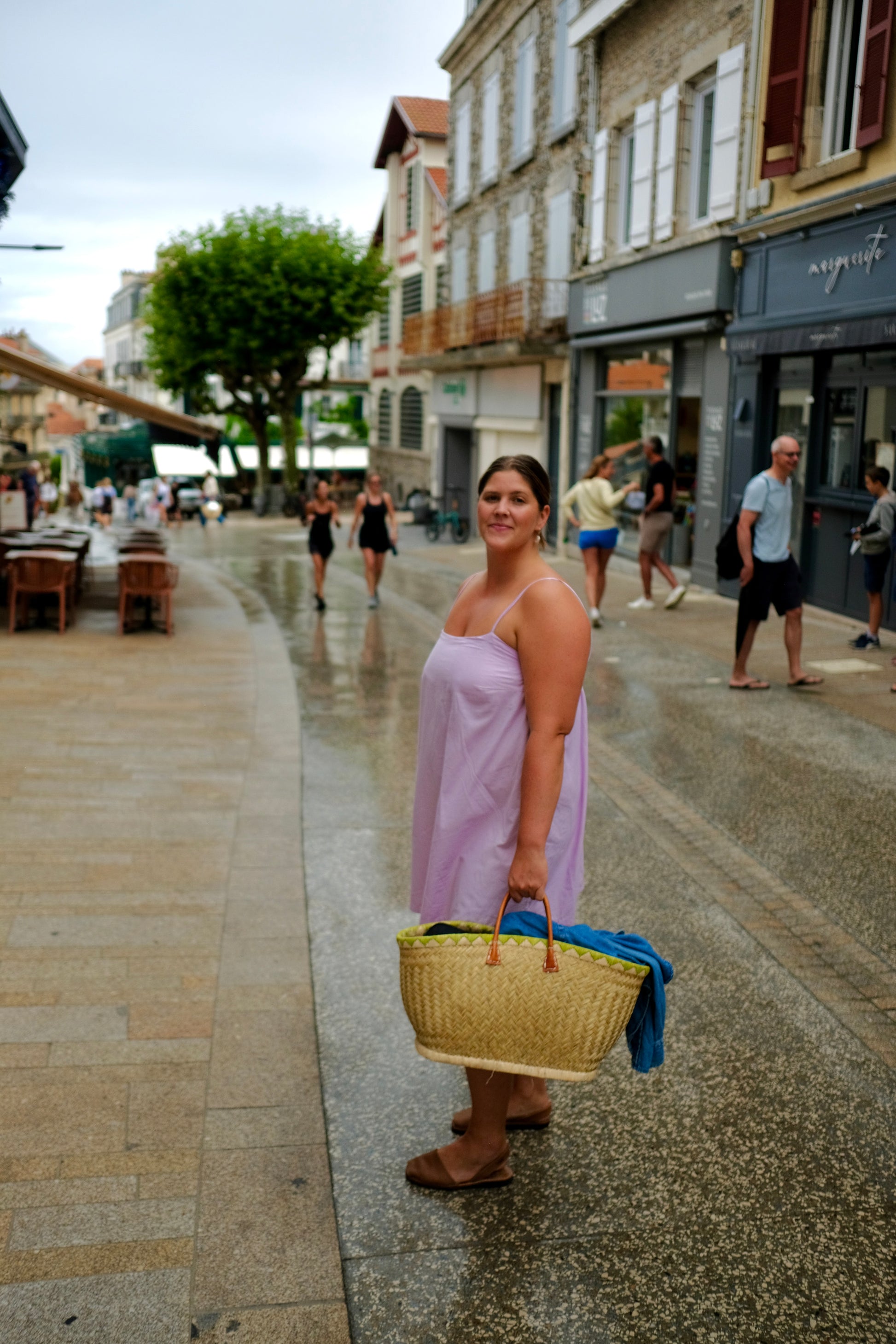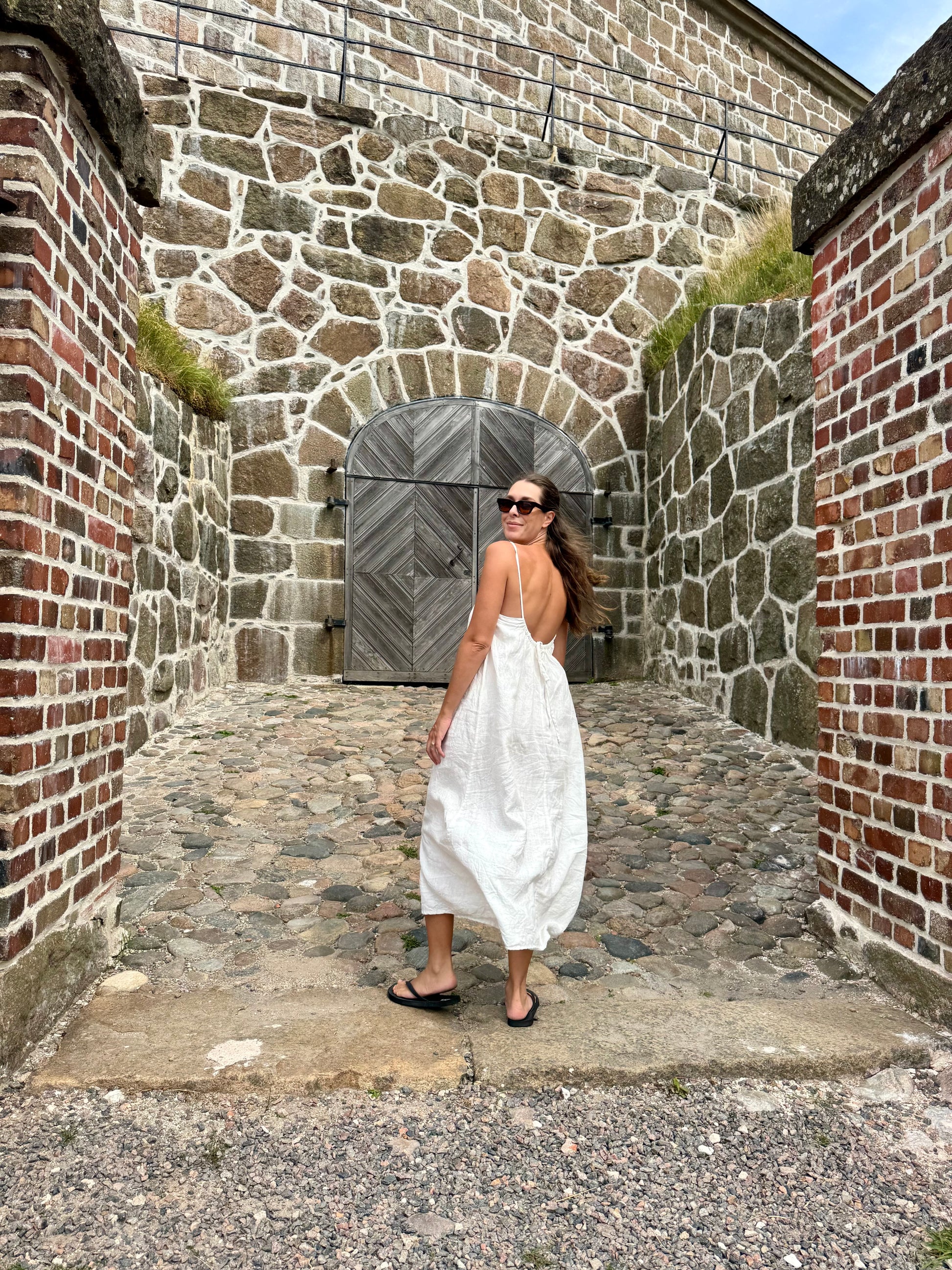 This pattern is made for woven fabrics and the look of it will change a lot depending on the fabric you choose. A crepe will make it date night ready, whereas a linen or cotton will make it the perfect everyday summer dress. Other favorites include seersucker for ultimate coolness, cotton poplin for a crisp and billowy silhouette, or any rayon/tencel for a beautiful drape. If choosing a thicker fabric, like linen, you may want to use a matching, lighter weight fabric for the facing/bralette.