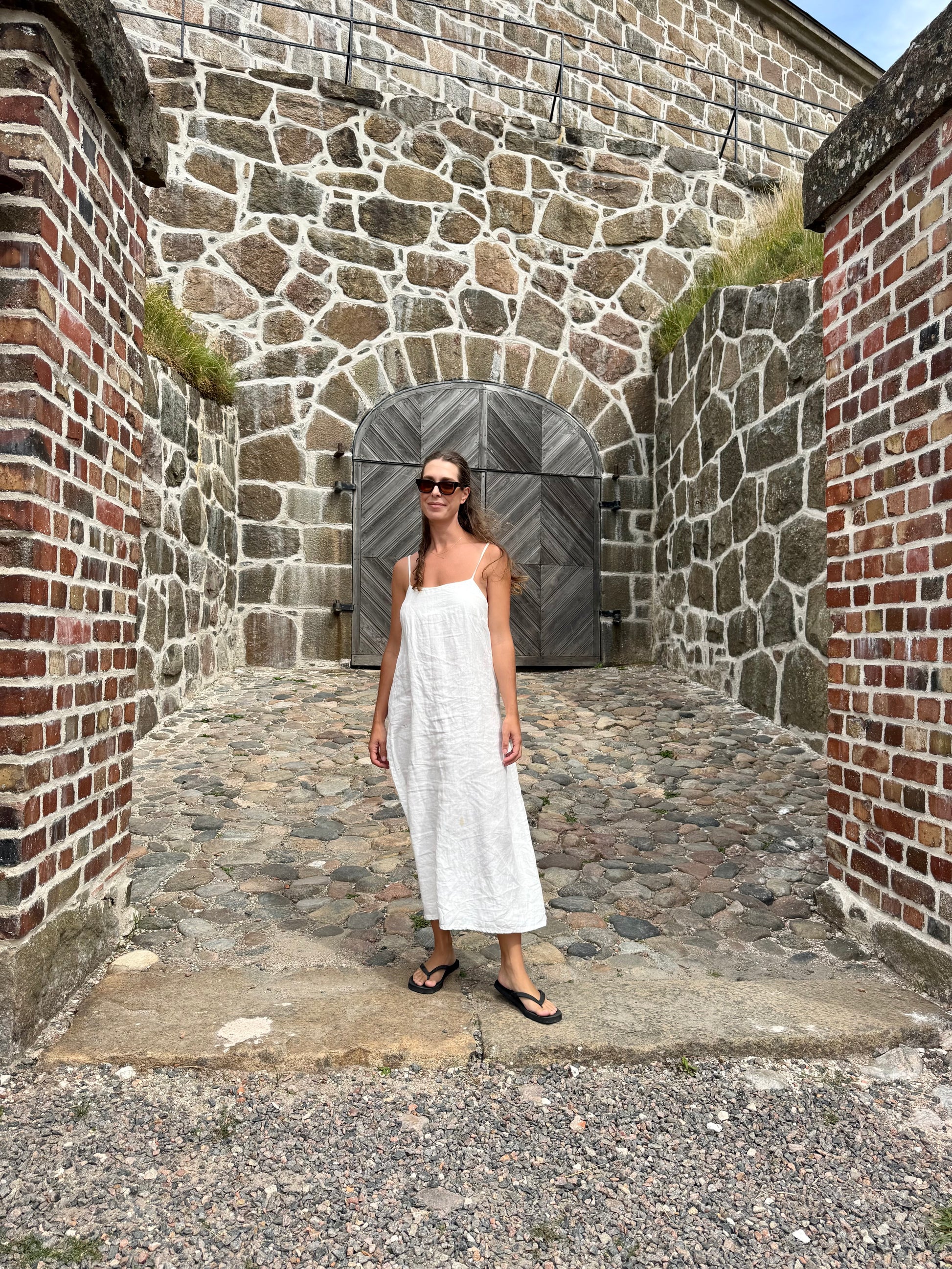 The Solig Dress is a simple dress with a sleek silhouette, suitable for beginners as well as advanced sewists. View A features an elastic back and feels more secure around the bust than View B which has a slightly scooped gathered back with ties. Both views have a gently curved front neckline with side seam bust darts and thin straps. You can choose to make a maxi length version with or without side seam slits, or a mini version. The neckline is finished with a facing that covers your entire bust. The instructions will walk you through installing elastic in the facing hem to make it into a low support built-in-bralette, if you so choose.This pattern will teach you some fun techniques including: