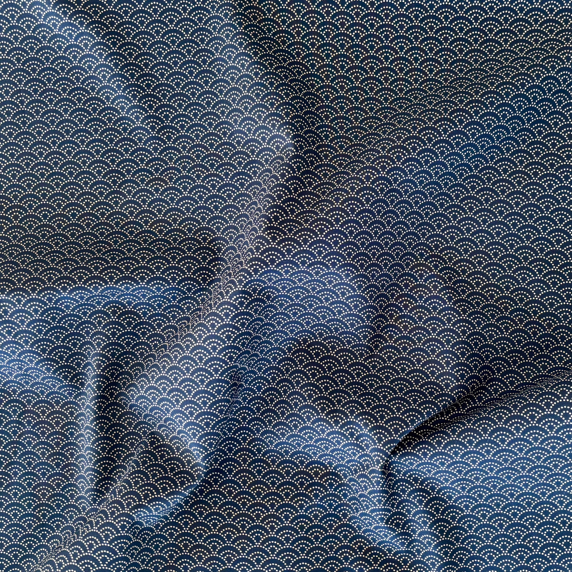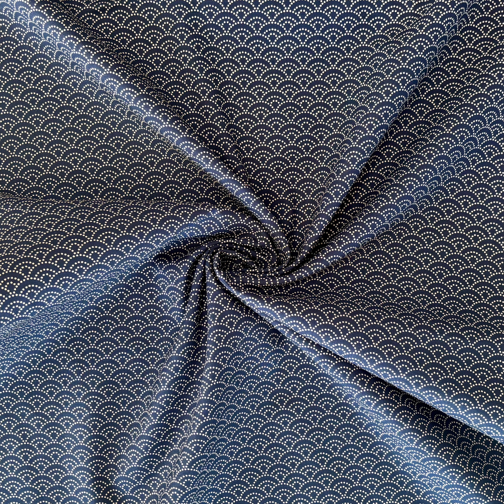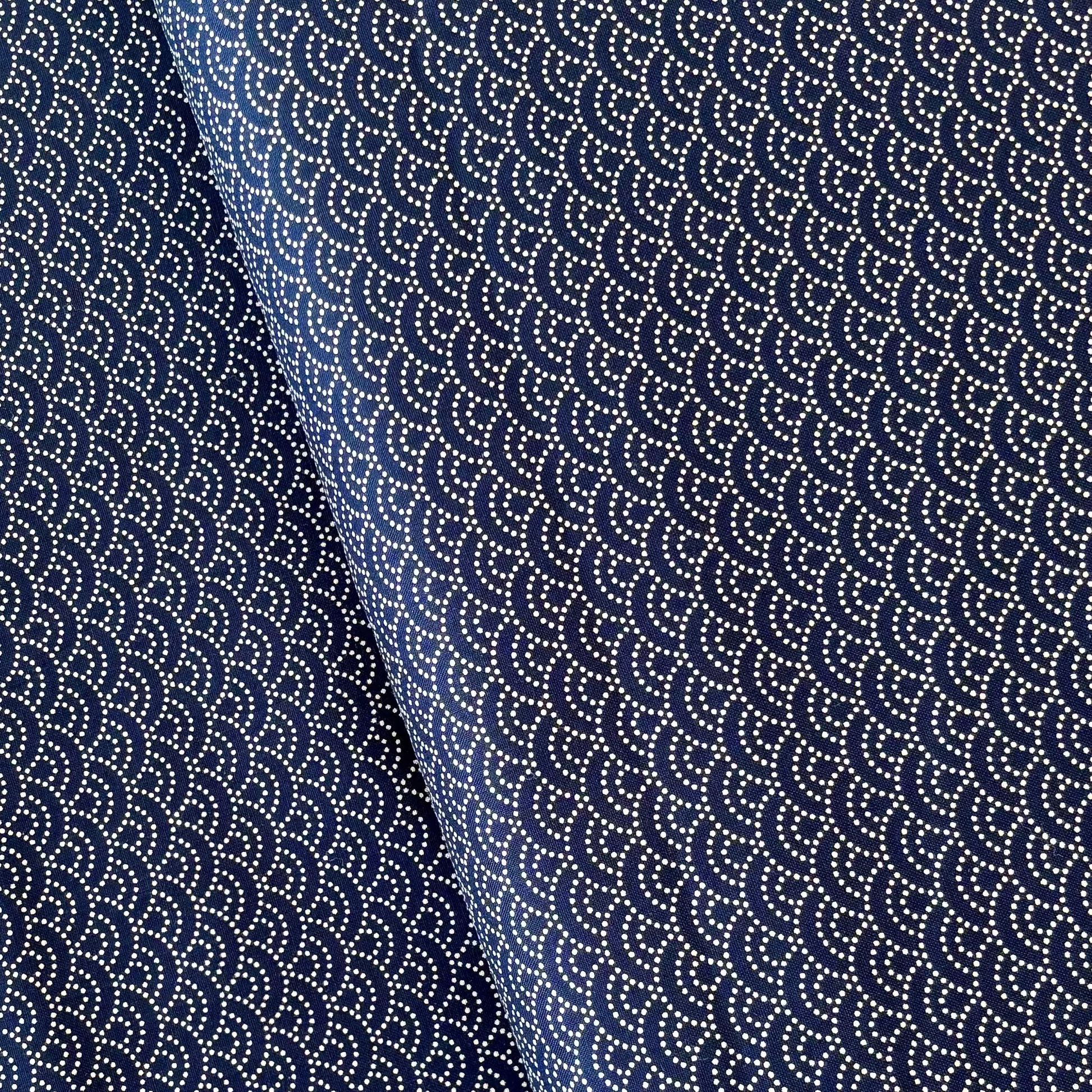 This fabric was sourced in Japan by my friend Elin! It's a crisp cotton, with a Japanese fan print on a dark blue background. I'd call this a cotton sheeting - suitable for lighter-weight garments where you still want some structure (like a button down, or something with pleats), and great for quilting. Please note that the back side of this fabric is not printed.