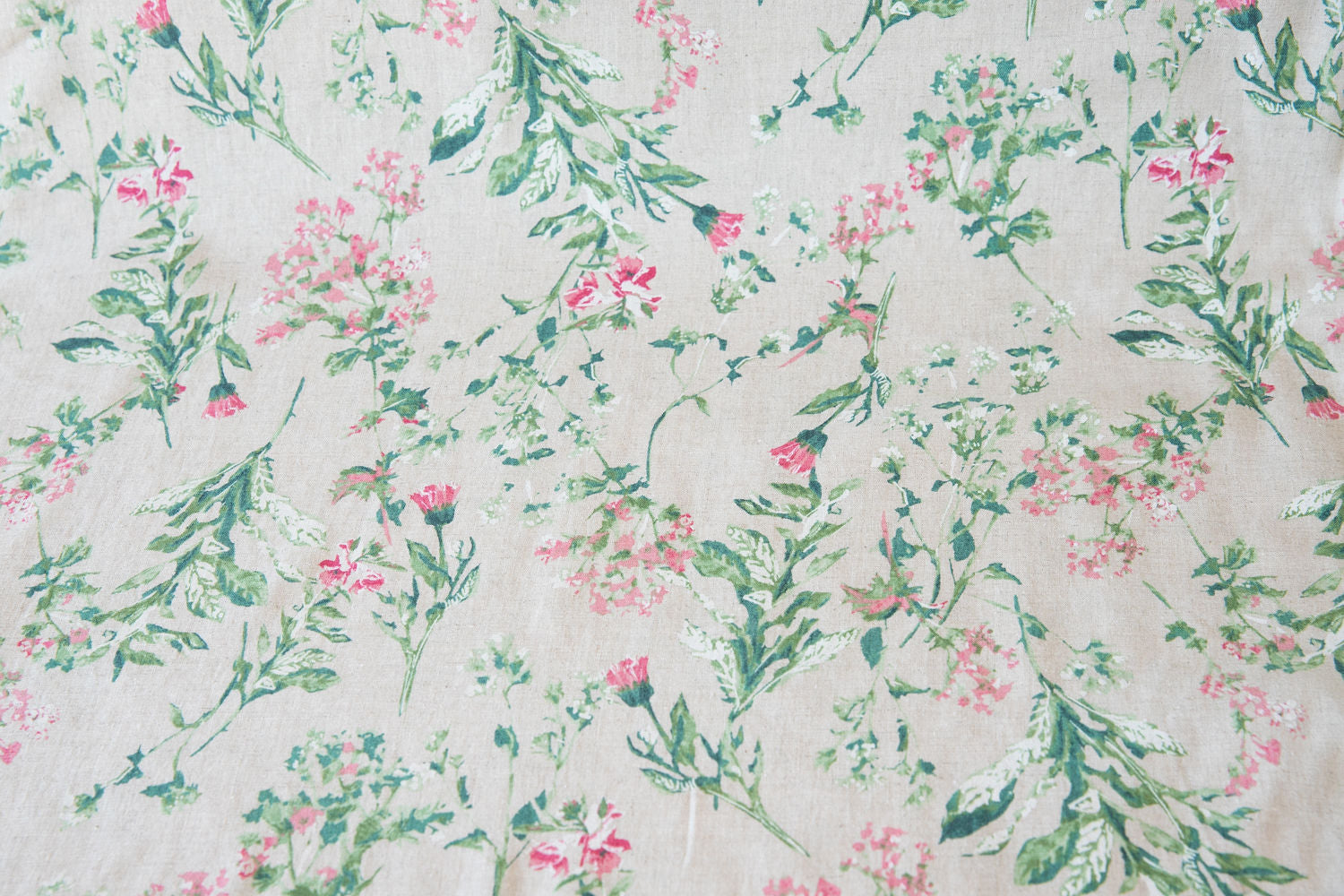 Soft Linen Cotton Blend - Antique Florals on Natural
